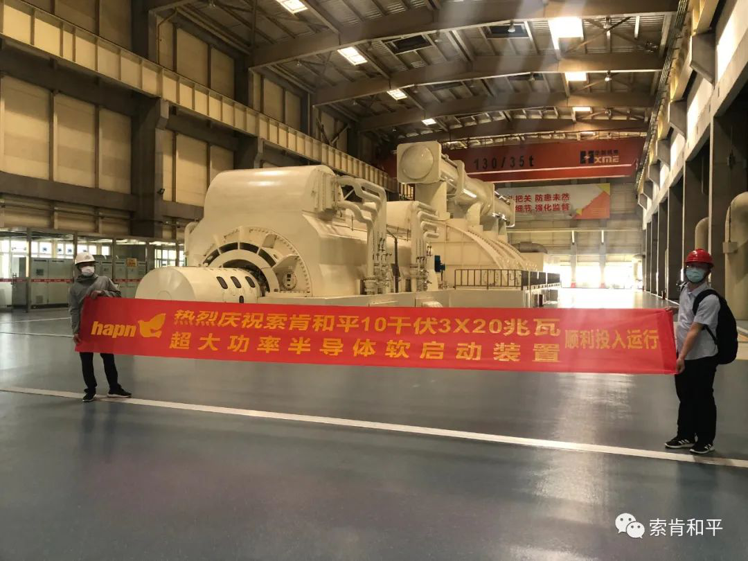 2020年5月20日,在索肯和平(上海)電氣總經(jīng)理陳勇,工程師潘工、趙工、呂工,能源公司王副總經(jīng)理、電氣總工程師李總工和電氣負責人杜工等相關(guān)人員協(xié)同下,20兆瓦級高壓固態(tài)軟起動裝置一次啟動完美成功,代表著能源公司二期工程勝利完工。